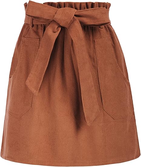 Women's Corduroy Skirt Casual High Waist A Line Skirt Skirt Short Skirt with Pockets Elastic Waist