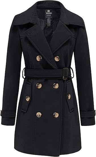 Women's Double Breasted Pea Coat Winter Mid-Long Trench Coat with Belt