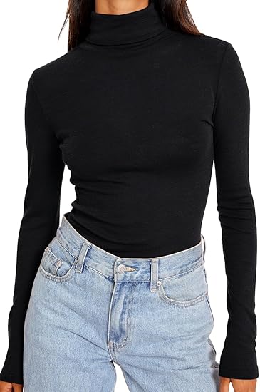 Women's Turtleneck Long Sleeve Shirts Fall Fashion Basic Thermal Underwear Tops Winter Clothes