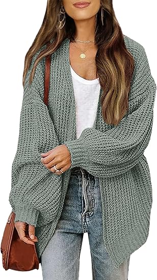 Women's Oversized Cute Lightweight Long Cardigans Fall Thin Waffle Knit V Neck Open Front Sweater Cardigan