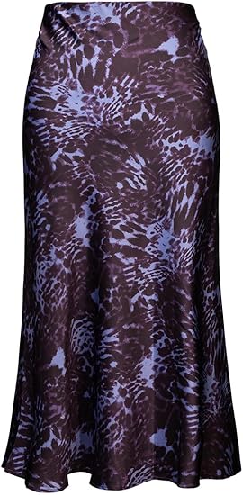 Womens Leopard Print Skirt Midi Long Length Silk Satin High Waist Elastic Skirts