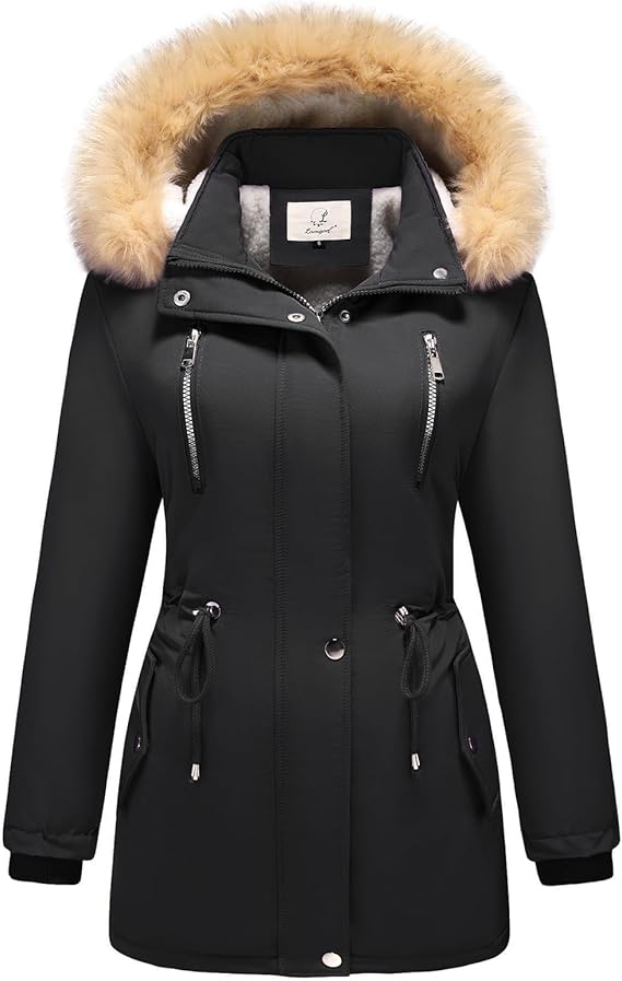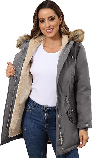 Women's Winter Coats Fleece Lined Parka Jacket Hooded Long Winter Warm Parka Coat with Pockets