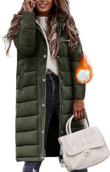 Womens Winter Long Puffer Coats Down Thicken Warm Quilted Jacket Mid-Length with Side Zipper and Hood Outerwear