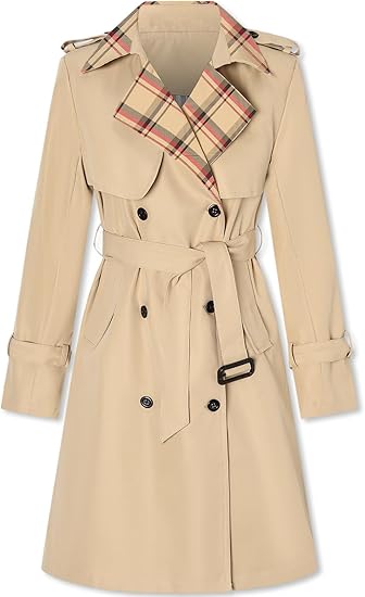 Women's Trench Coat Long Double-Breasted Spring Fall Fashion Classic Lapel Overcoat Outerwear With Belt