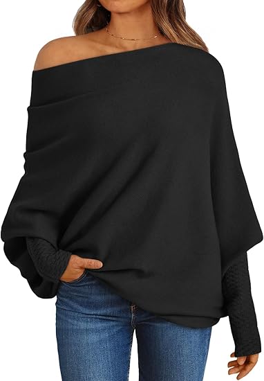 Womens Off The Shoulder Sweater Oversized Batwing Sleeve Loose Pullover Sweaters Tops